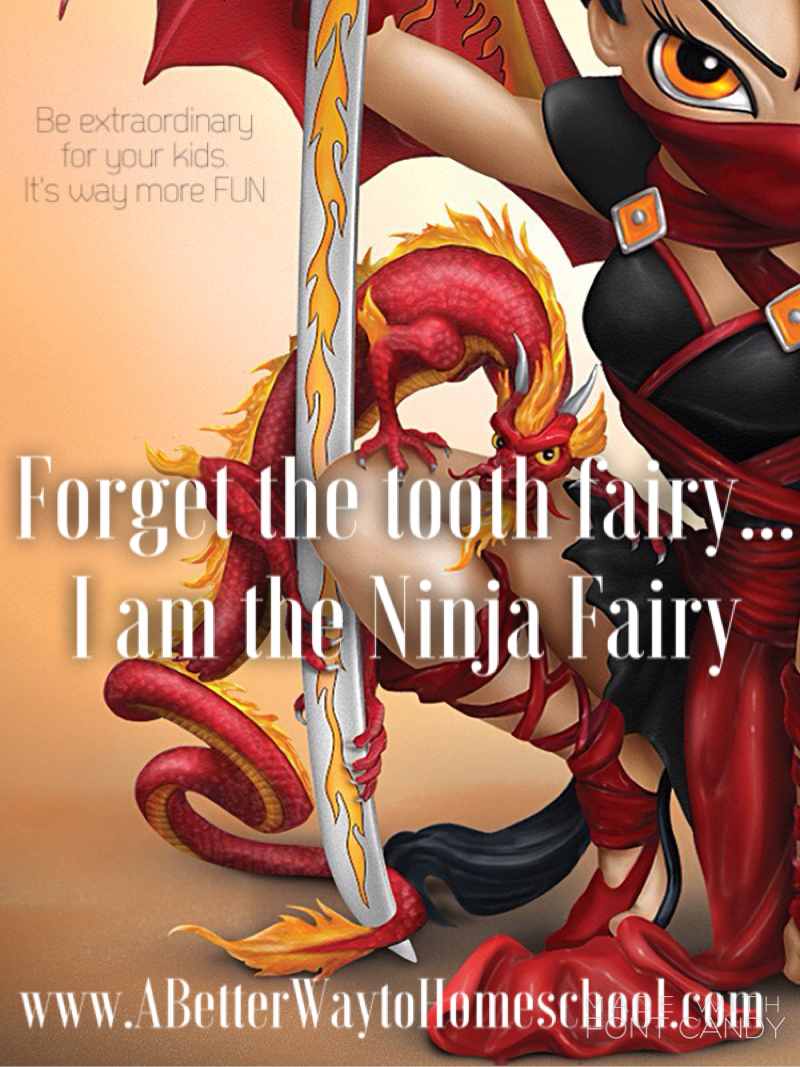 What about the Tooth Fairy August 5, 2015 By Bekki Leave a Comment This content may contain affiliate links. Forget the Tooth Fairy… I am the Ninja Fairy Who said kids should have all the fun? I have developed the persona of the Ninja Fairy in my home. I sneak into my boys’ room at night while they are sleeping to switch their lost teeth for cash, or decorate their rooms to celebrate their birthdays. It is so much fun that I am declaring war. I am surrounded by testosterone, so I have to pick my battles carefully. Challenge: “If you catch me in the act of secretly blessing you, I will double the blessing!” For those of you who want some tooth fairy resources, here is a cute site. Here are some free Ninja Fairy Notes to help you bless your kids!